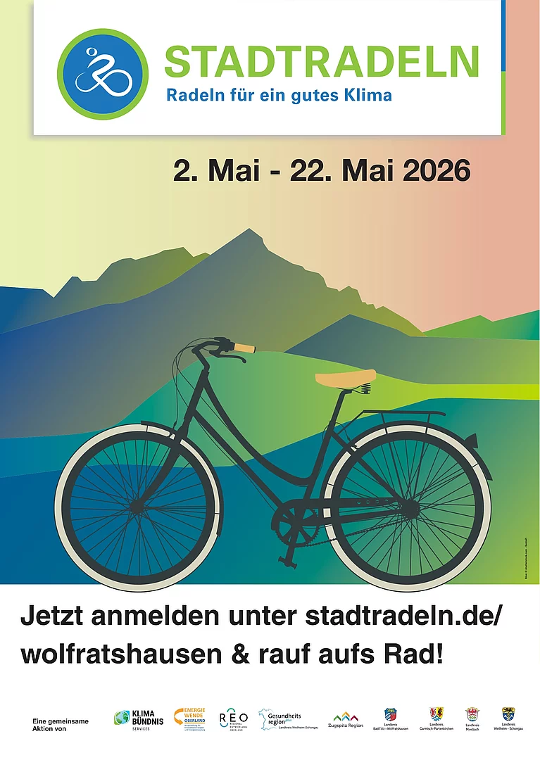 Wolfratshausen radelt auch dieses Jahr für ein gutes Klima. Die Stadt Wolfratshausen nimmt erneut am STADTRADELN im Landkreis Bad Tölz-Wolfratshausen teil. Ziel der Aktion ist es, möglichst viele Alltagswege klimafreundlich mit dem Fahrrad zurückzulegen und dabei gemeinsam ein starkes Zeichen für nachhaltige Mobilität zu setzen.