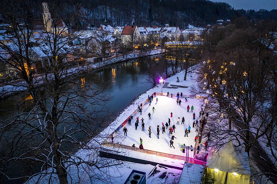 Am Freitag, den 28. November 2025 eröffnet die beliebte Eisfläche an der Alten Floßlände. Begeisterte Schlittschuhläufer können dann wieder die Kufen schwingen.