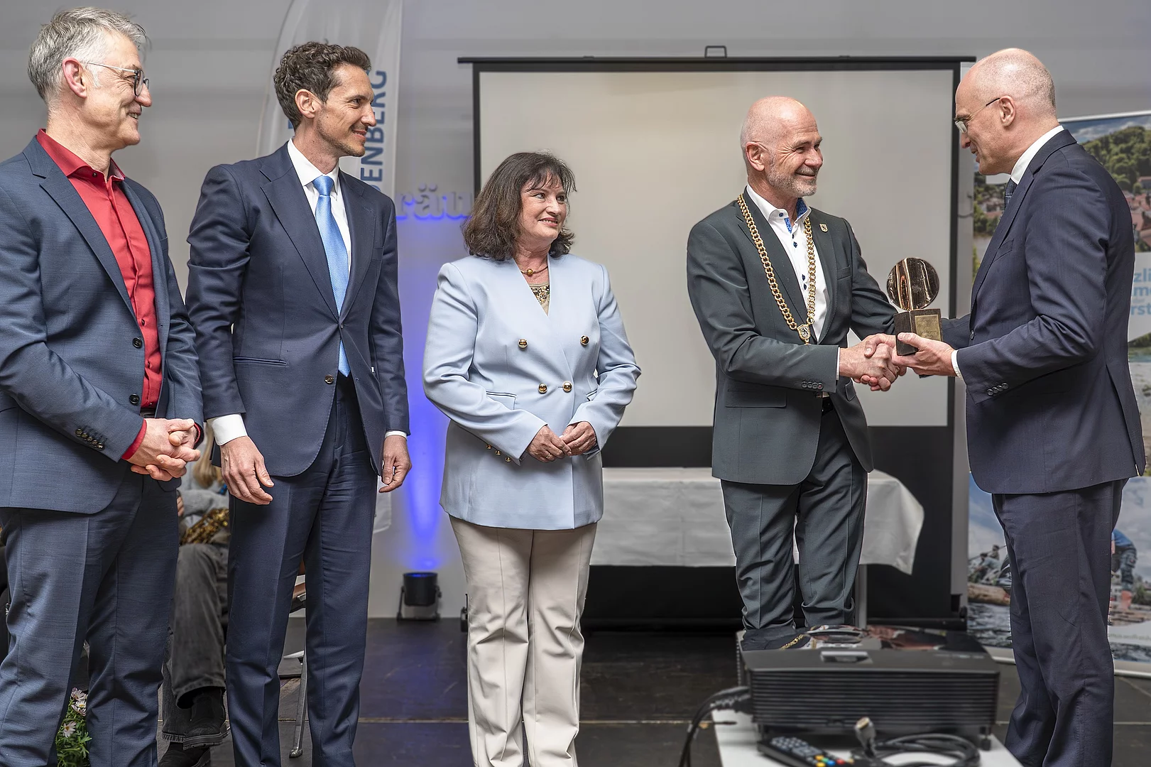 Gemeinsam mit Finanzvorstand Bozidar Grcevic nahm Dr. Kai Ziegler den Wirtschaftspreis dankend entgegen. Mit der Auszeichnung ehrt die Stadt Wolfratshausen Unternehmen, die sich durch herausragende unternehmerische Leistungen und besonderes Engagement für den Standort verdient gemacht haben.