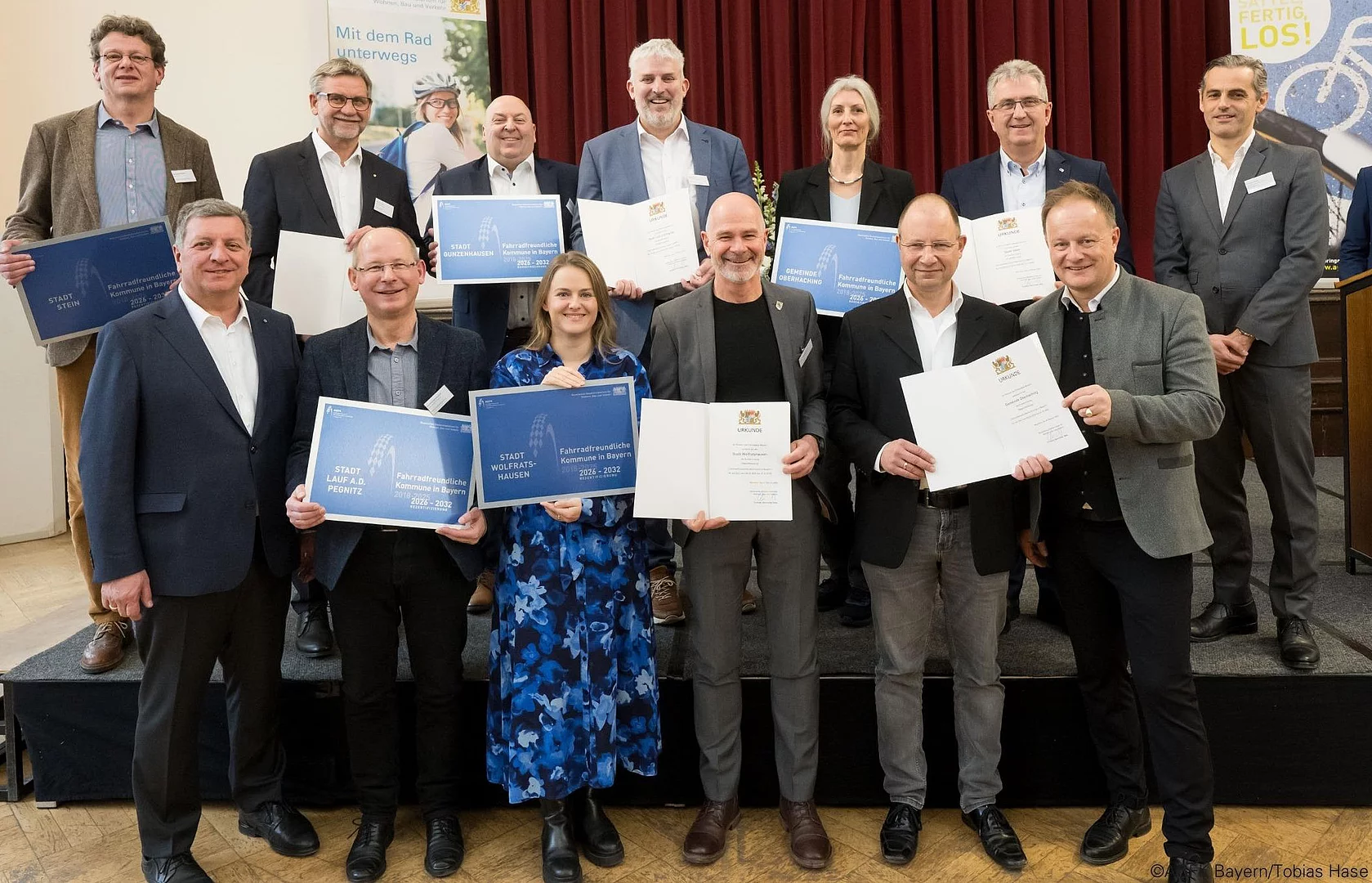 Gute Nachrichten für unsere Stadt: Wolfratshausen wurde erneut als „Fahrradfreundliche Kommune in Bayern“ ausgezeichnet. Bei einem Festakt in München überreichte Bayerns Verkehrsminister Christian Bernreiter die Urkunde zur erfolgreichen Rezertifizierung. Auch Landrat Robert Niedergesäß, Vorsitzender der Arbeitsgemeinschaft fahrradfreundlicher Kommunen in Bayern (AGFK), nahm an der Veranstaltung teil.