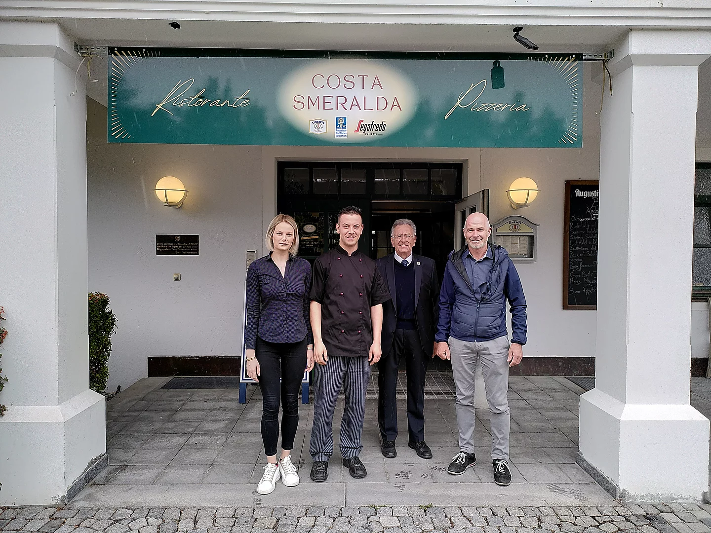 Erster Bürgermeister Klaus Heilinglechner, Wirtschaftsreferent Helmut Forster und Referatsleiter Dr. Stefan Werner besuchten das neue italienische Restaurant "Costa Smeralda" in Farchet.