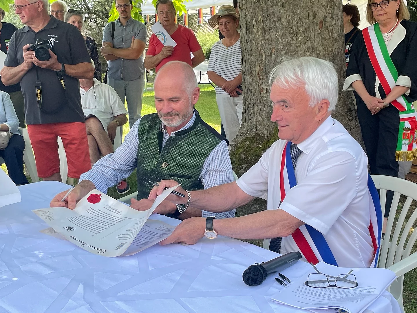 Im Rahmen einer Feierstunde unterzeichneten die Bürgermeister André Meuraillon und Klaus Heilinglechner erneut die Freundschaftsurkunde. „Für uns ist dies ein Bekenntnis, dass Freundschaft auch Verpflichtung bedeutet. Die Verpflichtung nicht nur in guten Zeiten, sondern auch wenn es schwierig wird, für den anderen da zu sein.“