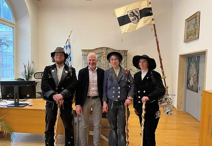 Zwei junge Handwerksgesellinnen und ein Geselle klopften am Donnerstag an die Rathaustür. Wie es die Tradition will, statten die jungen Handwerker auf ihrer Wanderschaft dem Bürgermeister einen Besuch ab und ließen sich einen Stempel in ihr Wanderbuch geben. Max ist aus der Lüneburger Heide, Rona ist aus Flensburg und beide sind Zimmerer. Anna ist Goldschmiedin und stammt aus dem Allgäu. Fast drei Jahre sind Max und Anna schon unterwegs - ihre Wanderzeit von drei Jahren und einem Tag endet in…