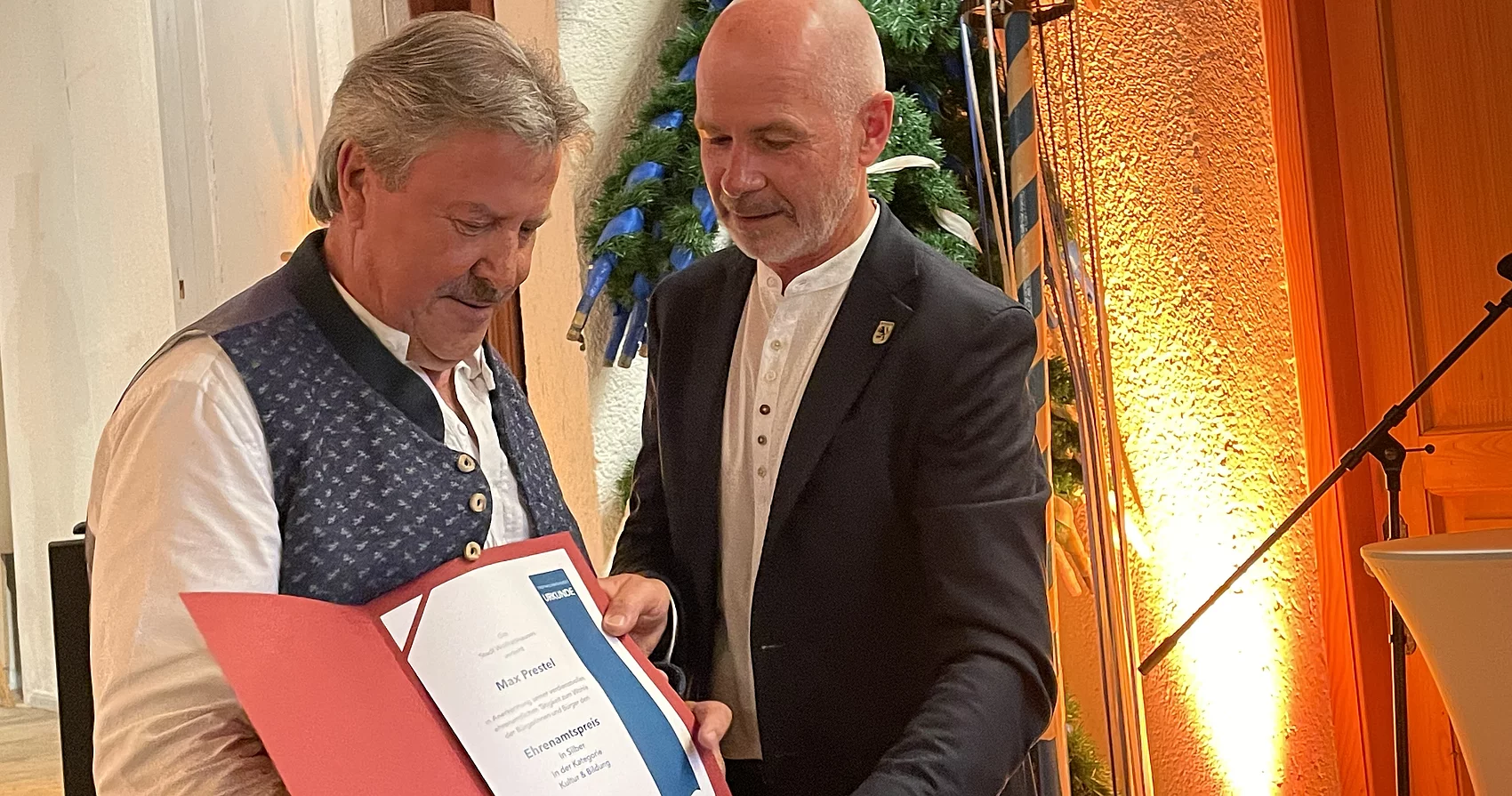 Im Bereich Kultur und Bildung bekamen Dietmar Galuschka für seine Ausstellungsarbeit im Amtsgericht und Max Prestel für seine langjährige Arbeit für die Loisachtaler Bauernbühne eine Auszeichnung.