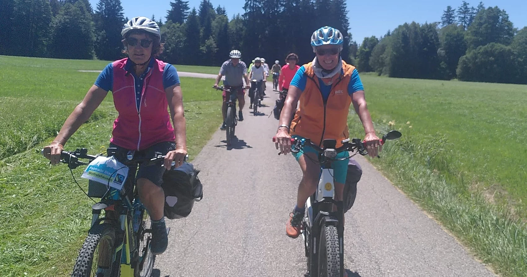 Bei bestem Wetter und guter Stimmung radelten am Samstag 18 Teilnehmer mit, bei der interkommunalen Radltour. Die Tour wurde von den Fairtrade-Initiativen von Wolfratshausen und Seeshaupt gemeinsam mit Geretsried organisiert hatten. Der ADFC Bad Tölz-Wolfratshausen führte die Tour und sorgte für die Sicherheit der Gruppe. Neben interessierte Bürgerinnen und Bürgern traten mit in die Pedale Stadt- und Gemeinderäte sowie die Bürgermeister der drei Kommunen: Fritz Egold, 1. Bürgermeister Seeshaupt, Sonja Frank, 2. Bürgermeisterin Geretsried und Klaus Heilinglechner, 1. Bürgermeister Wolfratshausen.