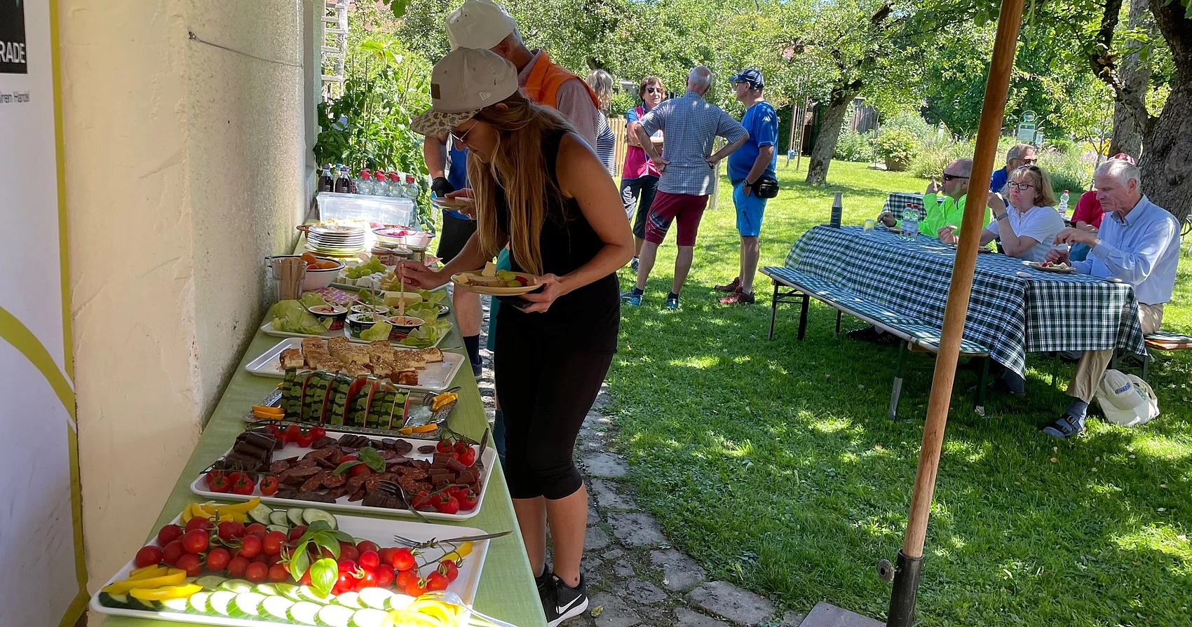 Die rund 50 Kilometer lange Strecke führte die Gruppe über Eurasburg zu einem Biobauernhof. Der Landwirt informierte die Radlfahrer über seine Milch-Produktion. Danach fuhr die Gruppe weiter zum Schaugarten nach Seeshaupt. Der Schaugarten feiert in diesem Jahr sein 50-jähriges Bestehen. Im Garten bekam die Gruppe eine Führung und im Schatten der Obstbäume konnte man sich am vegetarischen Büffet stärken. Zurück führte die Stadtradltour über Münsing und Achmühle nach Gelting.