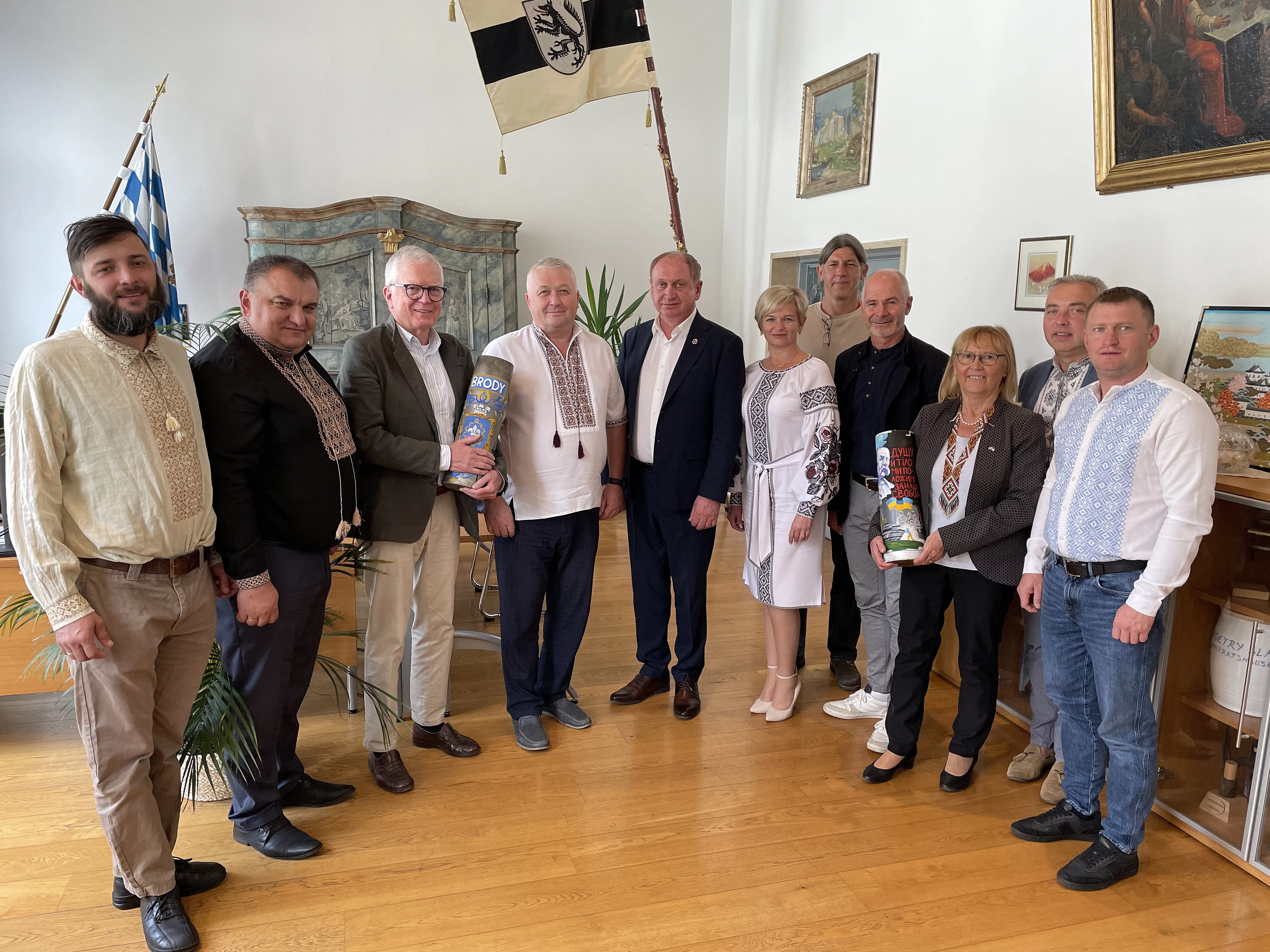 Ein großer Dank ging auch an den Verein Osteuropahilfe. Seit 30 Jahren unterhält der Verein einen intensiven Kontakt nach Brody und anderen Gemeinden in der Ukraine. Auch die Vertreter des Vereins, darunter die Vorsitzende Maria Reitinger und die Vorstandsmitglieder Eberhard Hahn sowie Jörn Bertleff waren anwesend und beschrieben die Hilfsleistungen des Vereins.