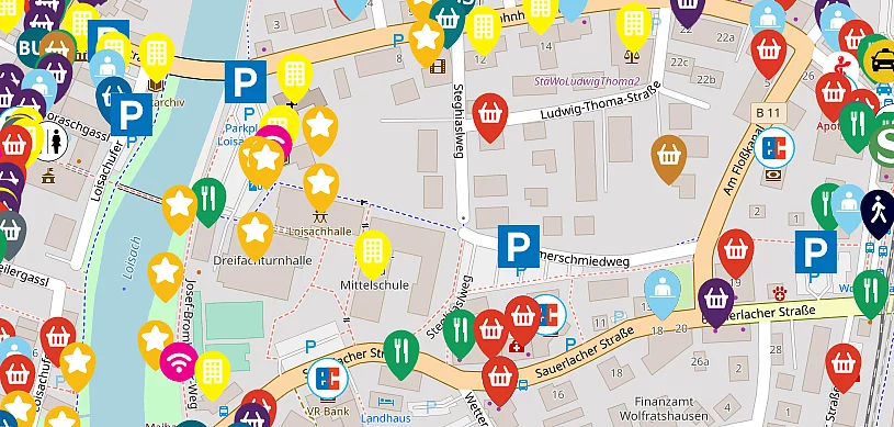 Die digitale Stadtkarte bildet mit aktuell bereits über 400 Einträgen in 12 Hauptkategorien die Einkaufs-, Freizeit- und Erlebnisangebote von Wolfratshausen ab. Alle Akteure und Leistungsträger der Standortgemeinschaft von Wolfratshausen können sich darin kostenlos präsentieren. Die eigene Stadtbevölkerung und die Besucher und Gäste aus dem Umland erhalten so einen bequemen Überblick über das vorhandene Angebot in den Bereichen „Essen & Trinken”, „Für Zuhause”, „Genuss & Lebensmittel”, „Gesundheit & Beauty”, „Kunst & Handwerk”, „Mode & Accessoires”, „Sport/Outdoor/Spielzeug”, „Service & Dienstleistungen”, „Apotheken & Ärzte”, „Freizeit & Erlebnis”, „Einrichtungen & Vereine” und „Parken & Mobilität”. Die Webseite ist responsiv und somit auch eine gute Begleiterin, wenn man mit dem Smartphone unterwegs ist.